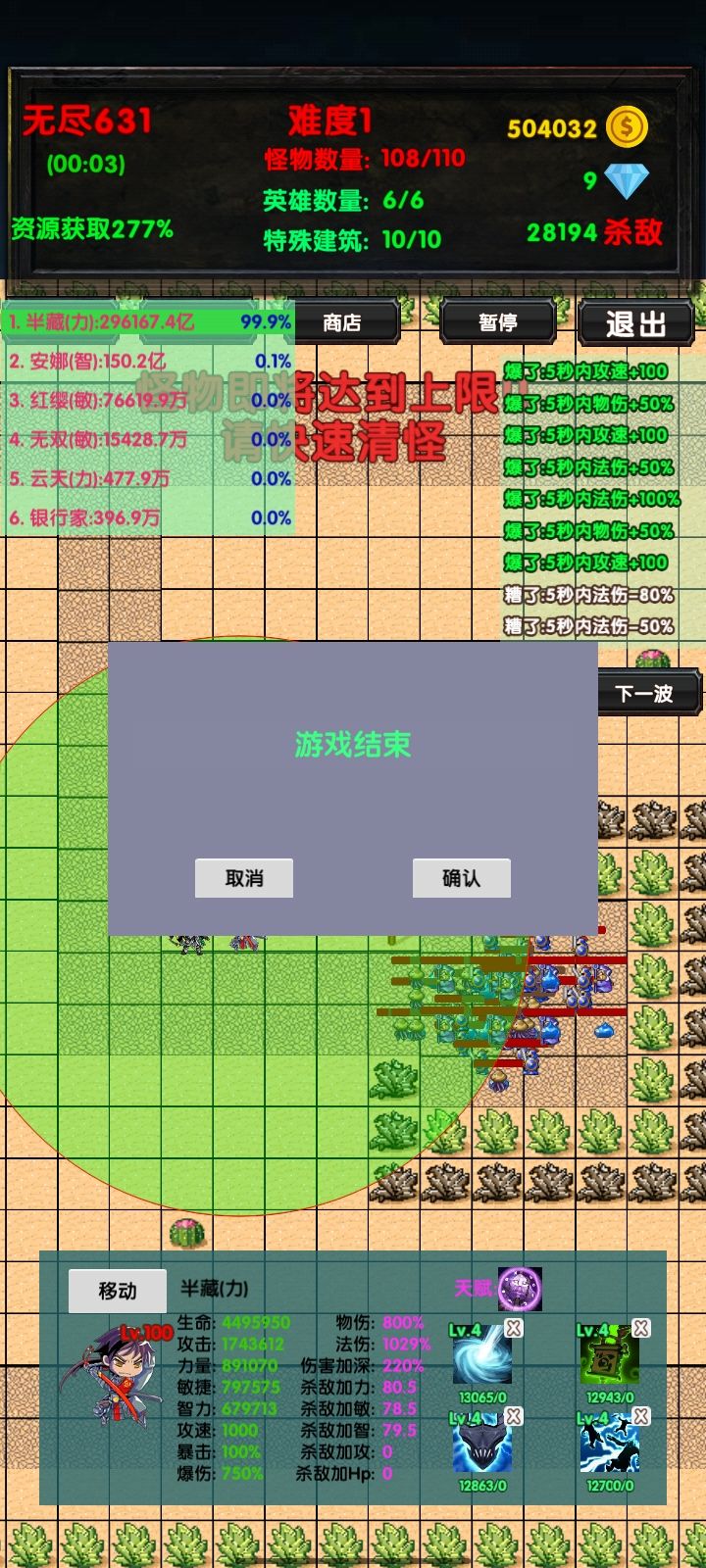 增加资源获取的小技巧:把大赌伤身和小赌怡情给法神佩戴两个加钱技能和两个攻速光环,用水元素复制