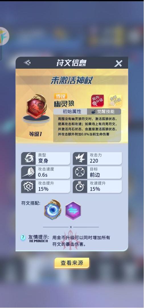 《符文王者》出新符文啦!速速来看!01【幽灵狼】基础特性:周围没有幽灵狼符文时,激活孤狼状态,提高攻击和攻速;如果场上有月亮符文,并激活月石状态,会直接激活孤狼状态,并攻击额外附加0.8%当前生命伤害觉醒:合并时,立即激活孤狼状态,持续9秒神杖:神杖激活后,幽灵狼有10%几率触发撕裂效果,持续造成当前生命百分比8%伤害,目标移动速度降低30%,持续3秒,不可叠加#符文王者##符文王者7月22日首发,不见不散~