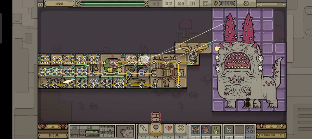 这次选用的是铁轮先生这个英雄,主点盾墙作为主坦; 出门推荐,带烈焰猪,蛇蔓兽叠面板(没有解锁蛇蔓兽的话也可以出精英猎手给破甲),领主的话,群友圣光给的建议妮可可以给野兽和植物(植生兽)额外的经验值加成,对于蛇蔓兽和烈焰猪都是不错的,而且第六章的两个1星强势输出(沉沦猫和蝎尾猫)都是野兽,还有魔藤仔和圣械守卫的【深渊魔藤】可以“改造”周边单位,让他们也可以吃到妮可的BUFF;