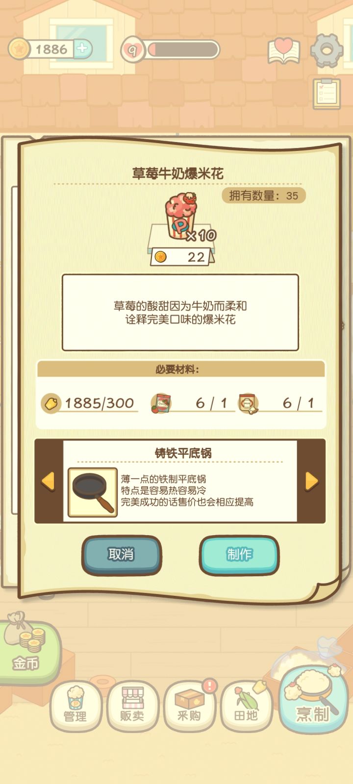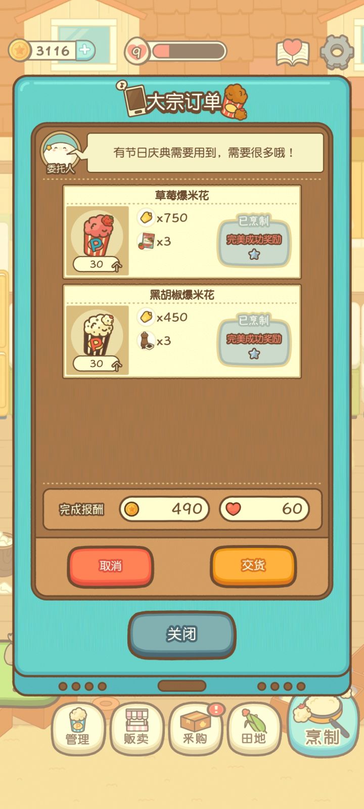5:大宗订单可以批量做,手动做爆米花无法批量做。这个设计真的是毫无人性化。纯属浪费时间,就像是你蒸包子,一个蒸一锅和十个蒸一锅都是蒸。为啥不能十个一起蒸?非得是一个一个蒸?这样玩的很难受就像是没穿抵抗靴,被冰霜法杖被动和姜子牙的技能同时打到一样难受。