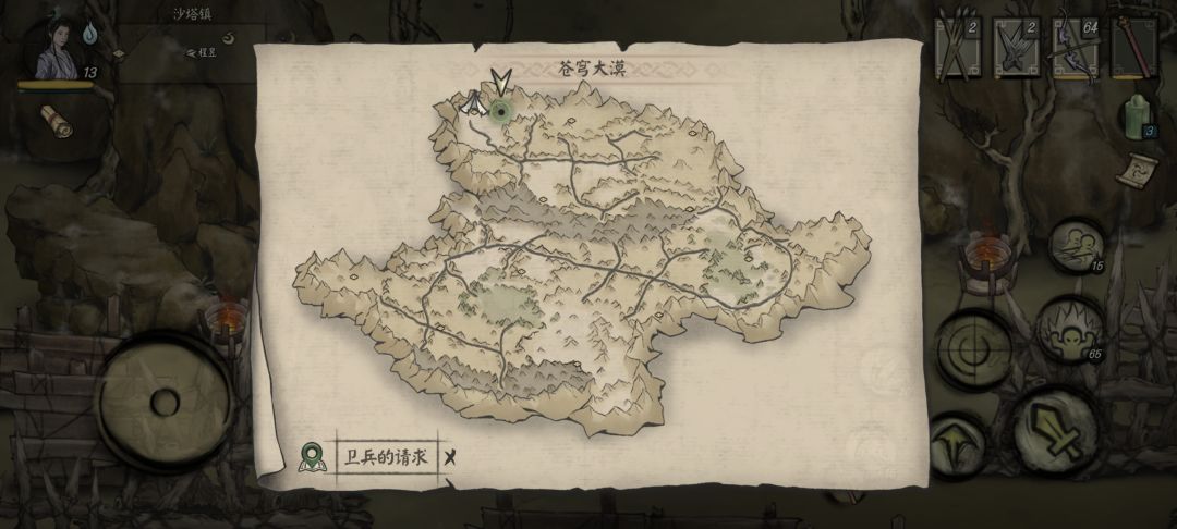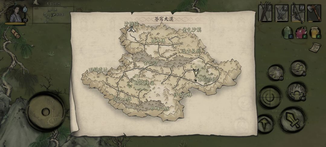 支线任务支线壹-救护小玉 在完成主线任务后,我们正好可以在沙塔镇的NPC-苏采溪那里接取支线任务-送信,我们需要找到她的妹妹苏小玉。 来到针叶石林的营地,我们和雪松交谈,得知小玉去东部绿洲采药未归,需要我们前去一探究竟。 如图,我们到达东部绿洲的西南角,发现小玉妹妹正在crying,我们上前询问,需要我们收集5个柿子或桃子帮小玉缓解一下低血糖(还好你没要5个赤芍,勾起我不好的回忆),给足果实吃