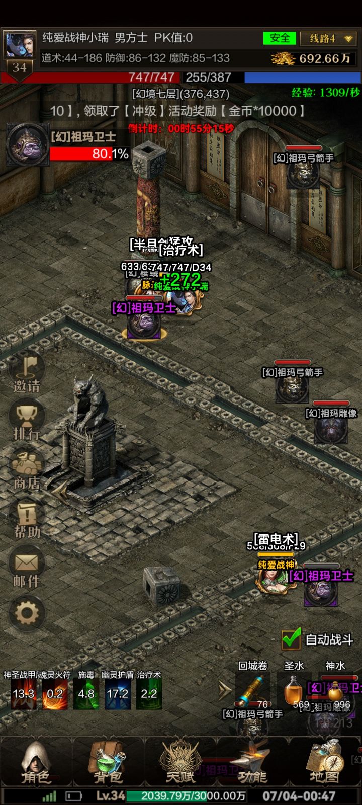 一区法师,我都想换角色了,太脆皮了,用了好多好多小血药蓝药几百几百的买全靠这个续命,感觉还是道士好啊……我绑定的还是个不认识的人还不能换绑,想跟朋友互绑都不行……这游戏太肝,安逸点的职业还好点……最坑的就是商店的法师技能书卖五十万,我自己也刷出来一本……
