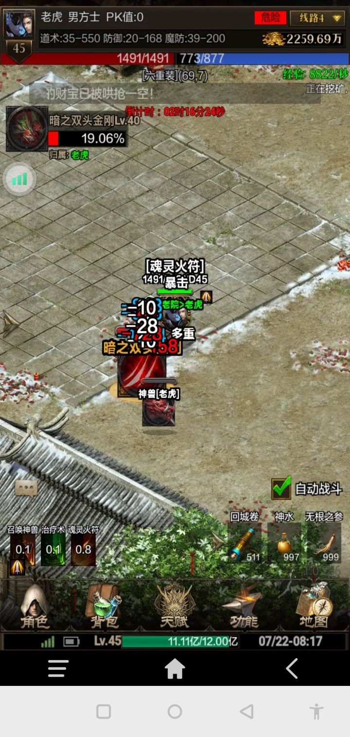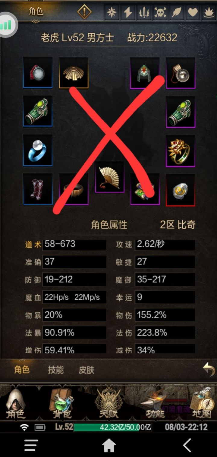 43级了,装备不出好东西,战斗力上不去,现在才9000多,道术200出头,玩不动了感觉
