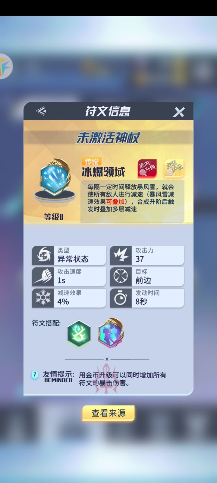 《符文王者》出新符文啦!速速来看!02【冰川风暴】基础特性:对减速目标造成更多伤害,减速目标死亡时,对周围减速目标造成额外当前生命比例冰爆伤害觉醒:合并时,无视减速状态,直接增加伤害,并额外附加30%伤害,持续9秒神杖:神杖激活后,被击杀目标附带冰霜护盾,冰霜护盾附带怪物20%生命#符文王者# 7月22日首发!不见不散~