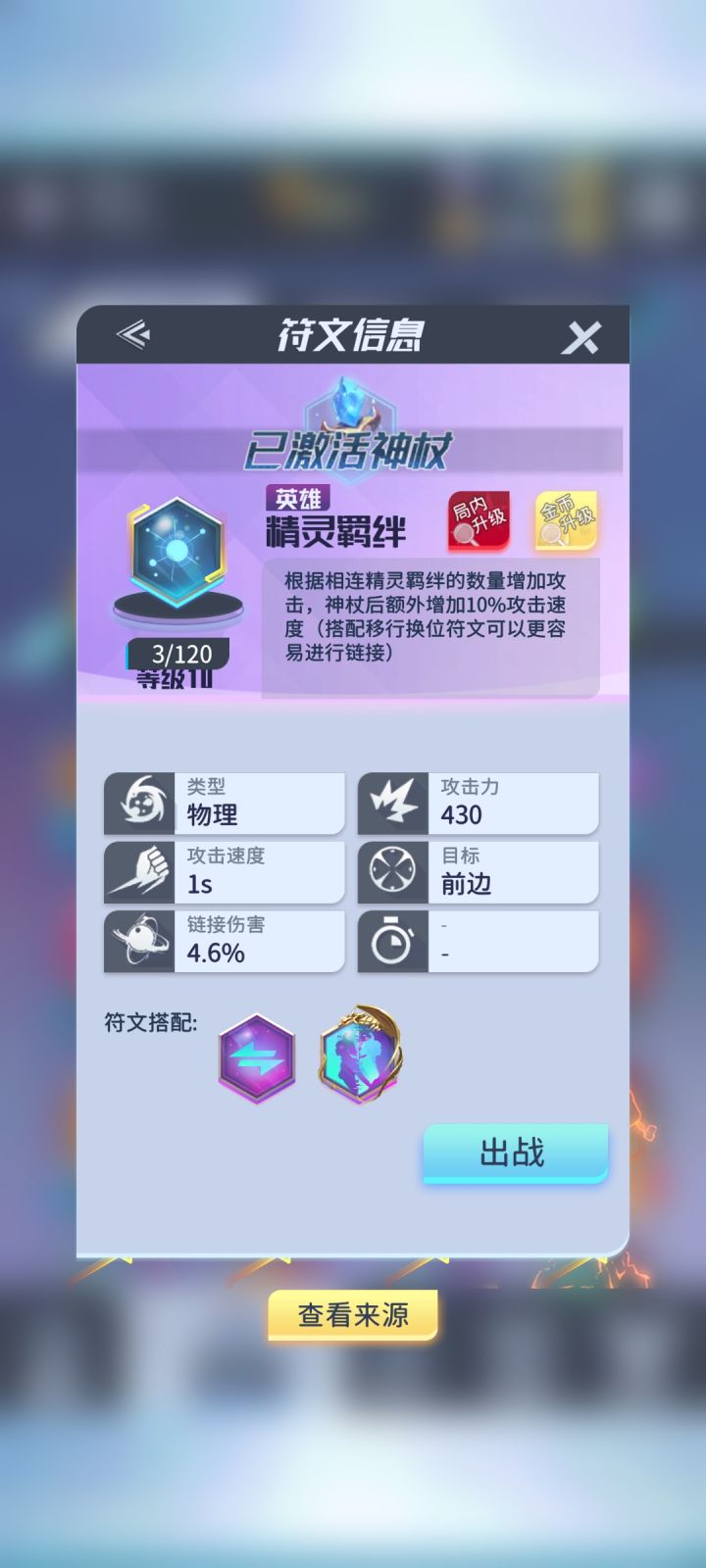 1.英雄符文:精灵羁绊需要和周围的精灵羁绊链接数量叠加加攻击,如果PK遇到猴子变化希望大大运气好,不然直接痛苦面具,可以搭配移形换位进行使用2.传说符文:烈火精灵这个符文必须达到指定数量1.4.9变成火鸟造成爆炸伤害,伤害可以一直叠加打一个怪越久伤害越高,但是前期容易暴毙,这个不指定数量小怪都刮不动,重点是先弄4个出来然后升技能4级然后攒sp到下一回合直接铺满,只要不是猴子降维使者随意拿捏,