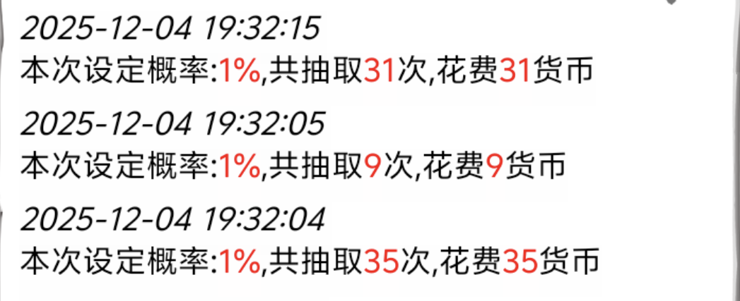 然后,我又找了一个比较欧的朋友,他第一次两次十连以内出货,随后十连在第三次又出了货,又让他单抽,五十次以内同样出了货,暂且把他作为欧皇,进行对比。