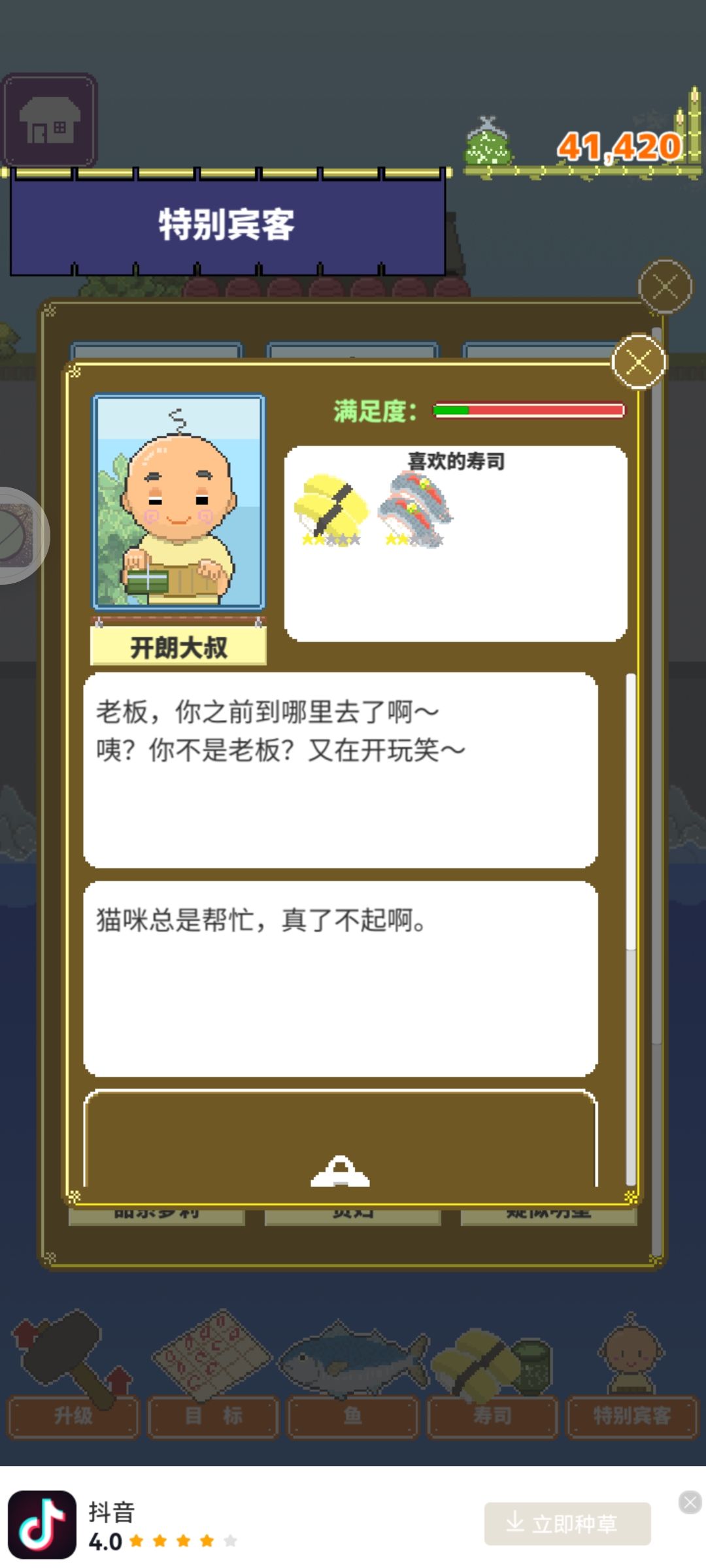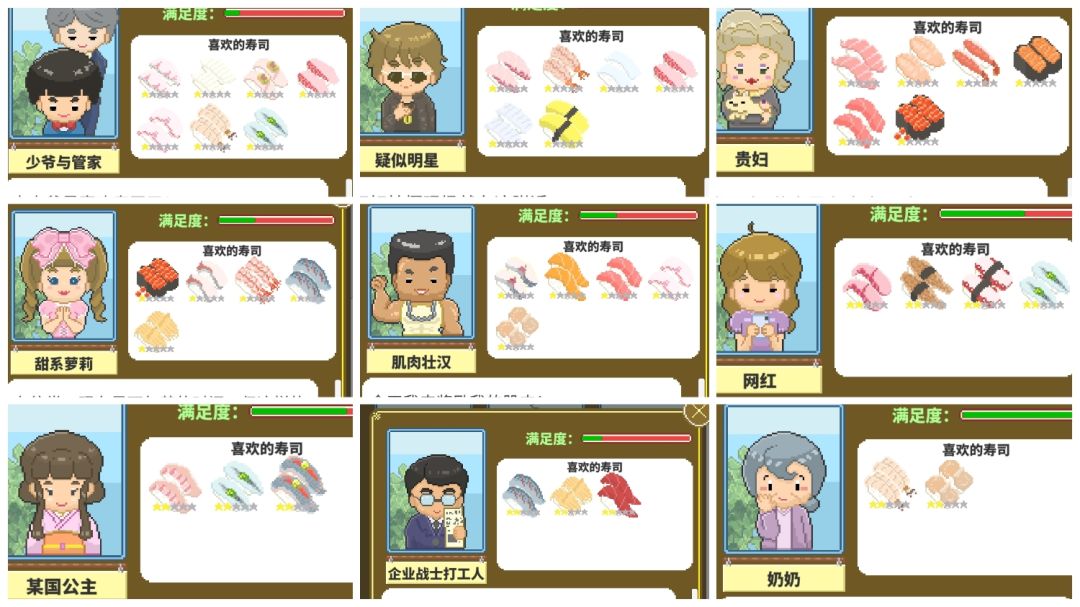 感觉已经有很多大佬试出来了所有客人,就干脆做一个方便找的帖子,寿司的位置是解锁所有的之后的排序,还有材料对应的鱼所在的位置啥的,但是还是建议大家自己先找找,我是因为看不了广告找的非常辛苦,才总结一下这个🙏