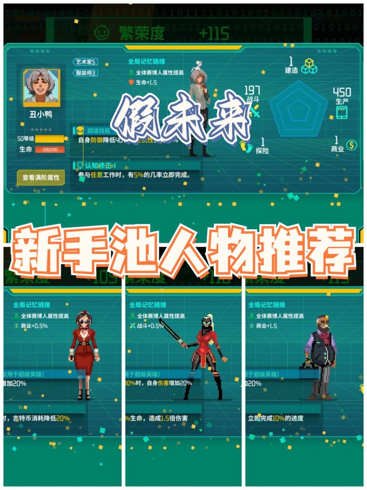 【一款让人失望的作品】【氪金警告】【科幻风】【卡牌强化】【模拟经营】——————————————————————————❤️游戏亮点❤️亮点一:独特的科幻风格,像素与建模的完美融合《假未来》在视觉呈现上做得相当出色,它成功地将像素风格与科幻建模结合在一起,像素化的建筑和角色造型既保持了复古的韵味,又赋予了游戏一种前卫的科技气息。很适合喜欢科幻风格的玩家进行体验。亮点二:玩法多样、融合贯通,