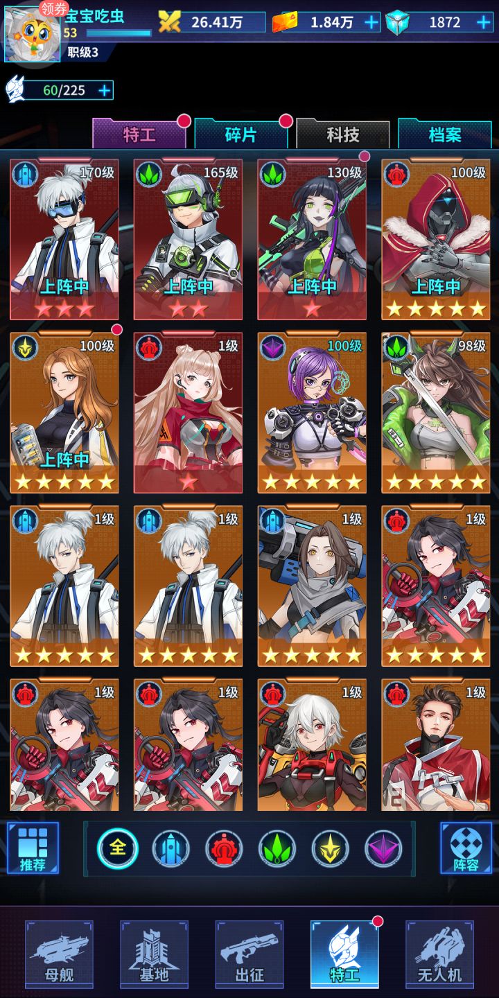 阵容搭配基本乱搭😂,前面不要乱用晶石,50级解锁战线里面的商店150一张卷,第一次到50级,前面晶石不乱花,至少能弄个七八十张吧。