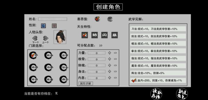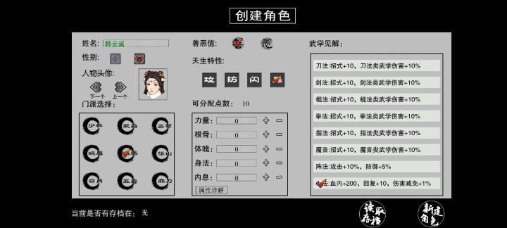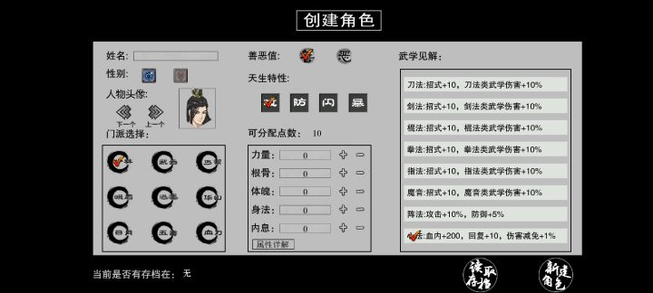 最具特点的就是这个门派选择与点数分配,玩家可以根据自己的喜好与需要进行点数的分配,这一点非常的“人性化”至少可以提升笔者对于游戏的兴趣。当然之后玩家们还可以通过后期的努力提升自己。