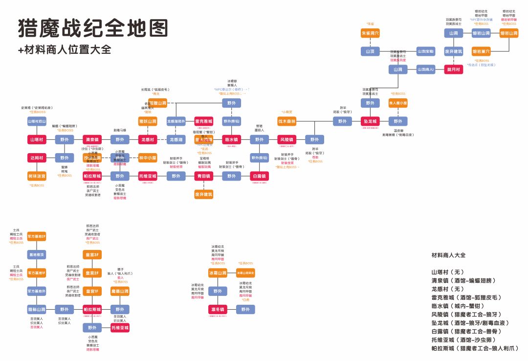 猎魔战纪全地图+材料商人位置大全 《有地图,不迷路》保存到手机使用 ⭐⭐⭐⭐⭐一通完⭐⭐⭐⭐⭐ ⭐⭐⭐⭐⭐好游戏⭐⭐⭐⭐⭐ #材料商人大全 山塔村(无) 清泉镇(酒馆-蝙蝠翅膀) 龙感村(无) 雷克雅城(酒馆-狐狸皮毛) 临水镇(城内-蟹钳) 风陵镇(猎魔者工会-狼牙) 坠龙城(酒馆-狼牙/剧毒血液) 白露镇(猎魔者工会-兽骨) 托维亚城(酒馆-沙虫卵) 帕拉斯城(猎魔者工会-狼人利爪)