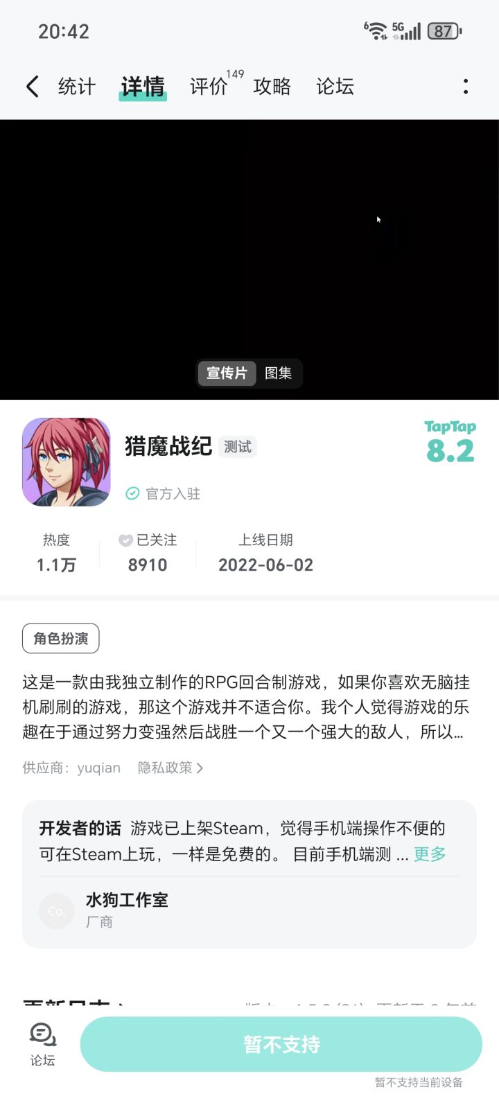 大家好,我是《猎魔战纪》的开发者,我新制作的游戏《神魔决之九黎剑》已经发布了试玩版本,试玩版目前包含了第一章的内容,后续我会继续更新。游戏地址:https://www.taptap.cn/app/511034目前计划是在试玩版基础上更新第二章,随后等所有内容更新完毕,再发布正式版。游戏还有很多未完善的地方,欢迎大家来试玩,如果觉得还不错,可以关注下后续的更新。另外游戏的PC版也已经发布到