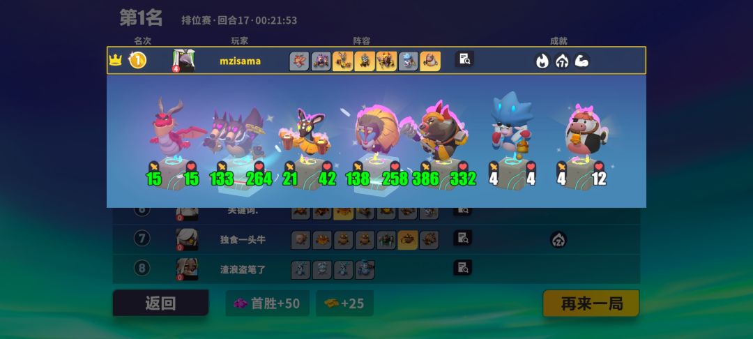 我也是用草原一路打到第七名,接下来该睡觉就不打了,不过说下运营想法。 前期尽可能提升战斗力,有牌买牌,先把场子铺满,尽量用草原或者中立牌,这样商店刷新草原牌的概率就会多一点,熔岩牌前期用来打工也很不错,而且记得要留相同的牌以便合成金色牌。 1星的鼓手鹏鹏和2星的热情河马都可以留,是我们稳血的前期成长牌。 铺满场子之后,商店提升到3星,可观察下一个对手的场面情况,如果他上回合的场面较弱就可以升级商店