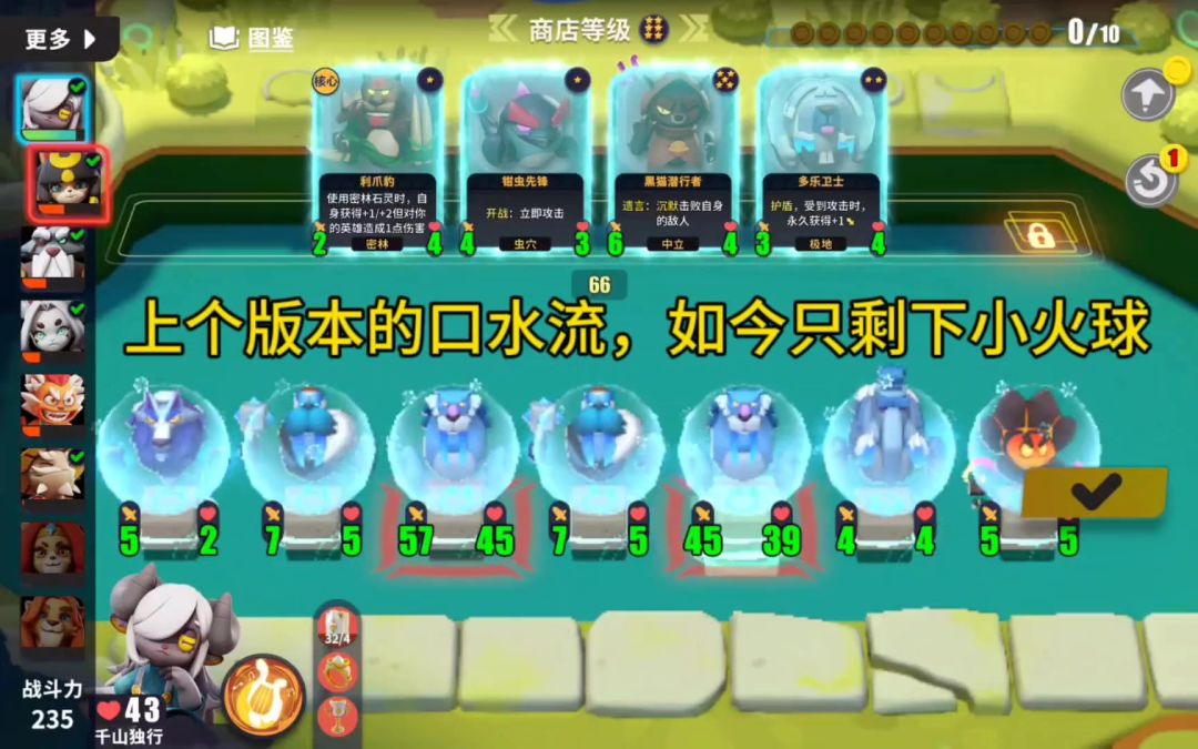 大家好,我是千山独行。[表情_开心][表情_开心] 最近经最近经过策划的一番调整,想要快速成长,已经变得十分艰难。但是高属性碾压对手带来的快乐又让人沉迷。所以乘着其他大哥流都被砍了,我胖虎流先上一波大分。 前期 1星极地豆豆+2星 兔八爷+3星胖齿虎(最好两只) 找到胖齿虎,立刻可以开始启动。升本找4星大脚怪,4星冰熊守护。 在找大脚怪的途中,可以找运达二哈,找精神雪兔,找穿山甲。给胖齿虎上护盾,