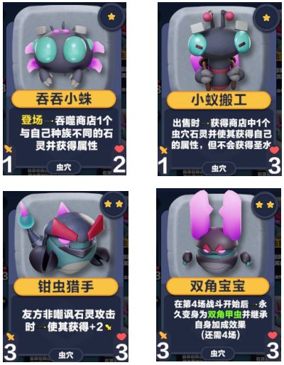 玩家朋友们~继上周的全新版本中迭代了草原和密林,剩下的所有种族也即将在下周的版本中迭代更新!从今天起,我们会不定期给大家提前“泄露”一些种族迭代情报,大家可以提前窥见不同种族迭代后的情况,对于即将到来的全新环境做出预判和研究,而最终的成品请大家以更新后的内容为主!下周的新版本中将会有4个种族(虫穴,熔岩,极地,沼泽,以及部分中立石灵)的大更新,还有UI/美术等方面的改动。其中会有全新的石灵,也