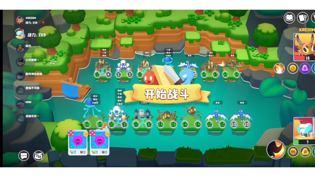 这应该是鬣狗拳手最变态的融合了,就是必杀+aoe,将三星aoe蘑菇变为融合,其实六星野兽蝙蝠也可以,融进六星必杀恶魔,刚开始视乎出bug了,吹了个粉红大泡泡,然后就成功合成,一招横扫千军哪管1000血,但其实英雄就这么一个技能,要苟到6还是有一点点难度的,可以加符文增加容错率。 另外我在想一个有趣的事,如果是融合无属性自爆兵王国民兵,会不会一下子就清场两边包括队友呢,那是何其壮烈,杀敌一千自损一千,有兴趣的朋友可以试试,不过我这局用硬壳流也毫无畏惧。