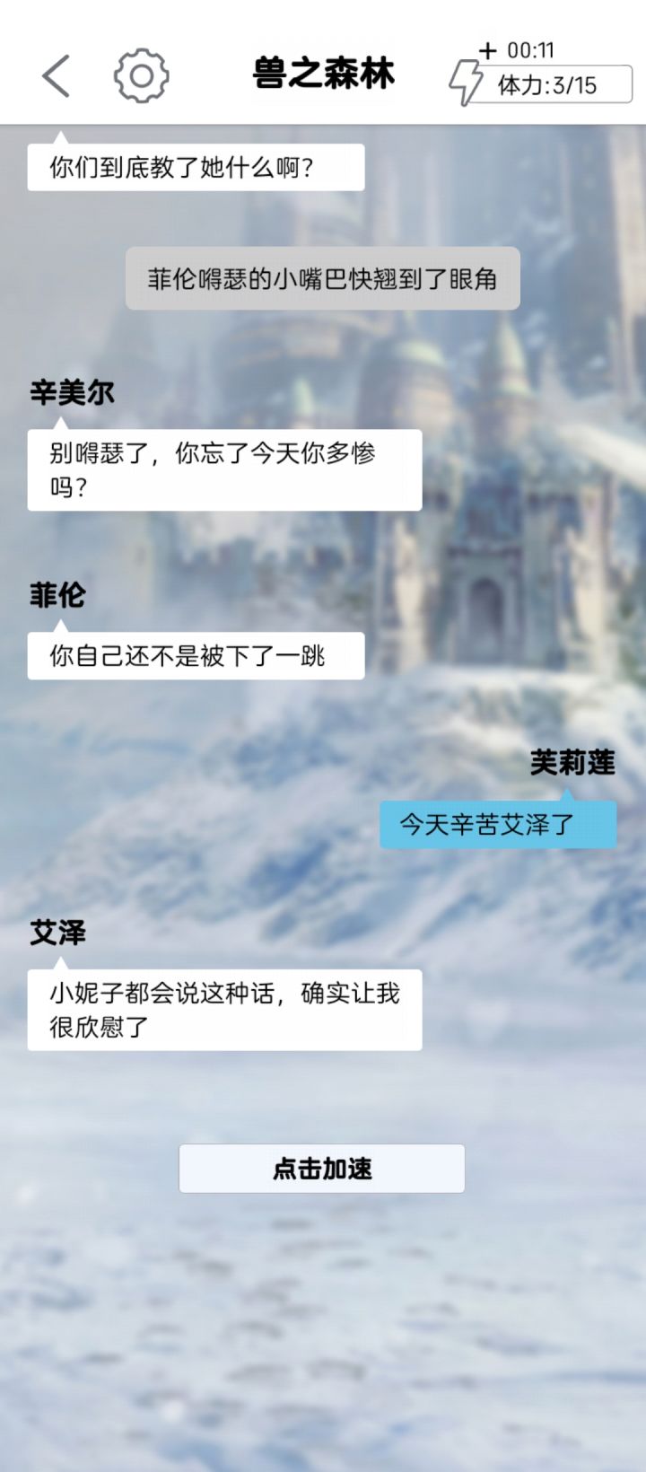 老实说,剧情完全没有看进去😂一周目放完了,获得了一个未履行诺言的结局,实在不想再进行一次。。太磨叽了,说是游戏,不如说是个自动播放的轻小说,播放速度还贼拉慢