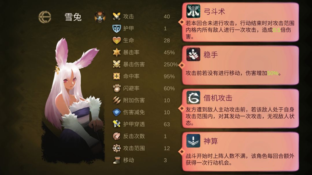 前言: ①猎手技能池有22个技能 ②猎手是九璃的伪一哥,它对装备要求不高,且实用技能高达11个,前期可以快速成型。 ③如果资源倾斜,猎手“雪兔”的“弓斗术”在清图方面可以压祭司一头。但BOSS单体战,祭司一哥的位置还是无法动摇 ④手写不易,求个赞 实用技能 T0: 神算:战斗开始时上阵人数不满,该角色每回合额外获得一次行动机会 借机攻击:友方遭到敌人主动攻击前,若该敌人处于自身攻击范围内,对其发动