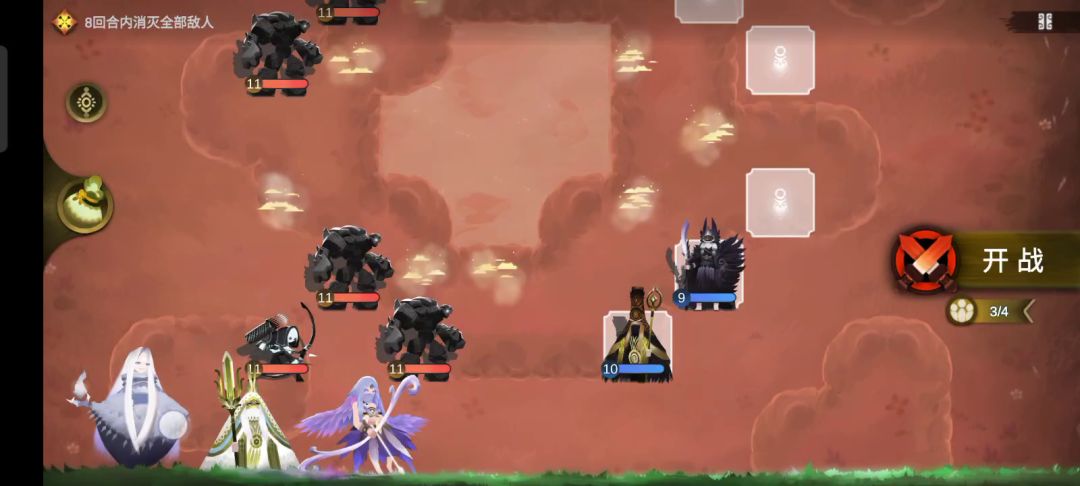 技能全选范围伤害和流星落,和范围buff,进图抱团站一堆互相蹭buff,一直按跳过就行了。 最好配个那个可以把死了的敌人变为自己人一回合的盾,无敌了,跳过几回合就赢了。