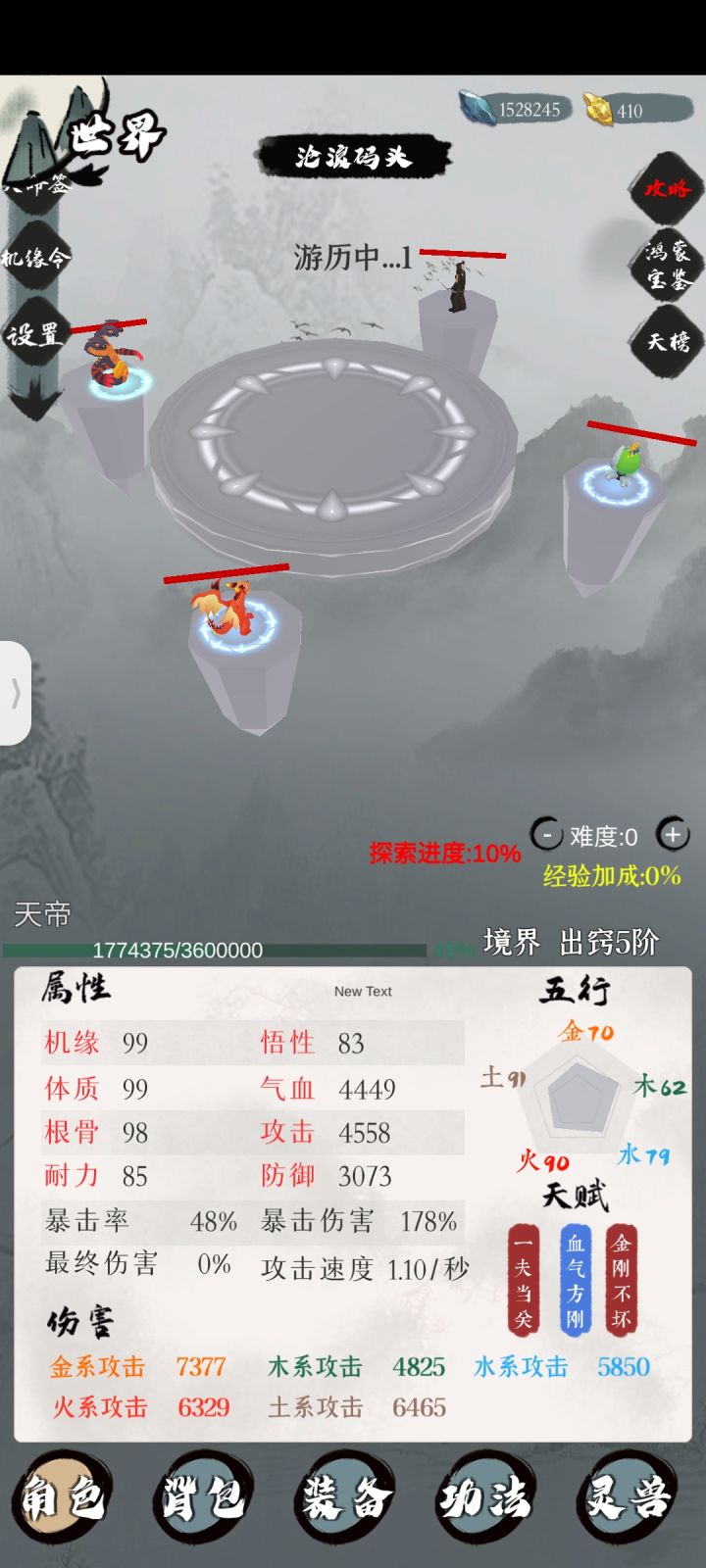 而且这只是开局,游戏内抽灵宠、灵宠成长、灵宠资质、装备属性、炼丹、心法技能(玄黄山脉)掉落这些都是随机性质非常之高的,并且因为主要是离线挂机,一般的装备掉落之类这方面早晚都会有的,就没有算在其中。