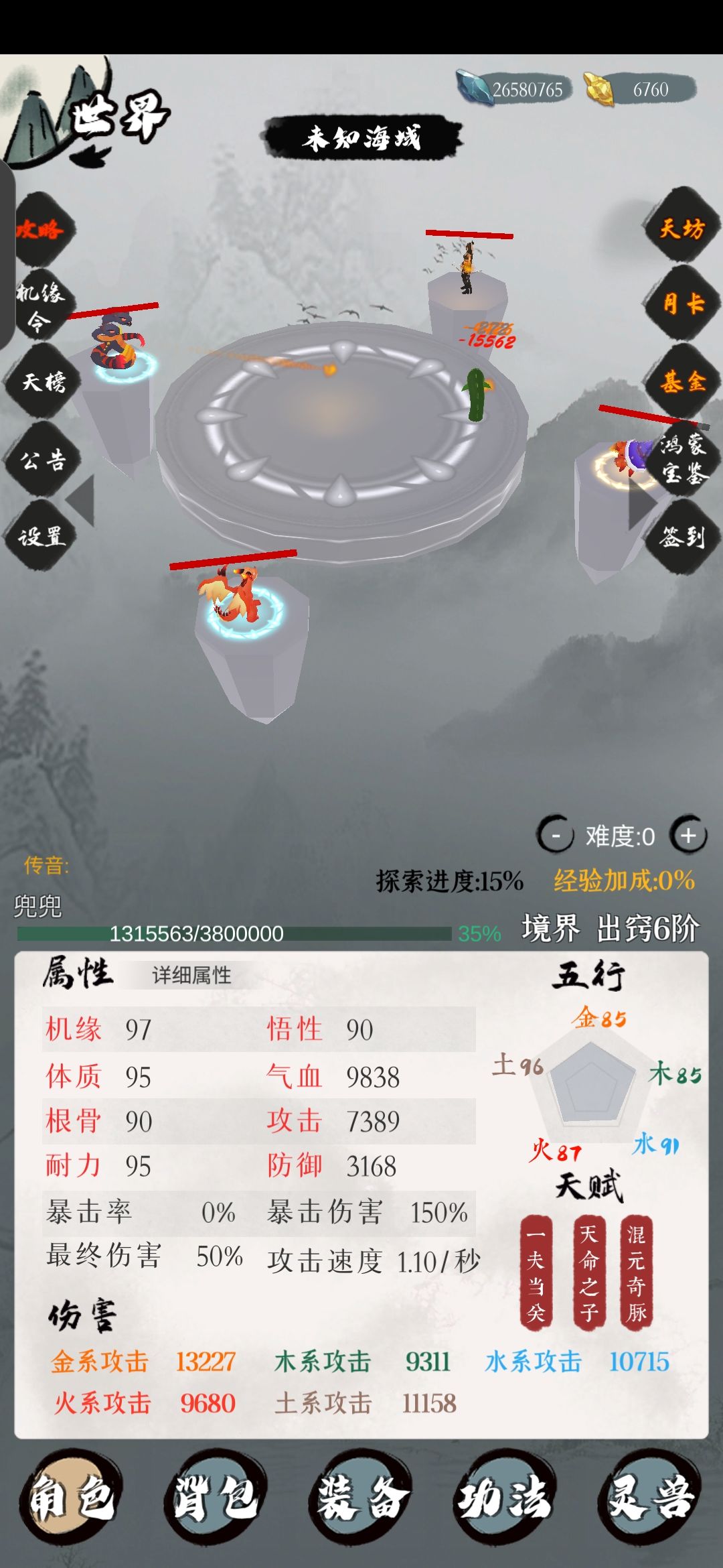 修仙路上一些小心德 关于五行属性 实际上武技里面已经说的很清楚了 火系攻击的时候是造成120@%的伤害 金系攻击有20@%概率造成双倍伤害 水系是吸血 木系无视部分护甲 土系造成额外最大生命值的1%伤害。 而主角攻击是每次攻击随机用一个五行属性,是伪随机的。 所以我们可以得出,火系和金系是受加成比较大的属性,这两个属性越高,受到的加成就越明显,而木系和土系受到的加成就越小。这里指的加成就是装备上带的五行百分比加成 由于土系附带的效果是固定百分比伤害,所以你土系攻击增加一千点和增加一万点的区别就在于多了九千点伤害。如果是火系就不一样了,你火系1000攻击的时候造成的伤害是1200,而增加到一万点的时候,造成的伤害是12000,实际伤害增加了10800点。 由此可以得出结论 火系=金系>水系=木系>土系。木系地位这么低,是目前看来穿甲收益确实不明显,而在前中期闯关的时候水系的吸血还是有点用,但是终归来说火金领先其他三系。 还有就是人物的暴击伤害会随着暴击值的增加而增加。但是这游戏初始暴击伤害就150%,所以暴击率的效果和同等的攻击力没法比。这也是螃蟹比不上龙,甚至不如狼的原因。宠物暴击伤害是不享受暴击率的额外加成的,机制不改,龙就始终是最强宠物。