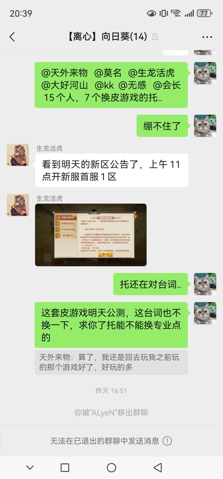 太下头了,玩个别的游戏,贵司还整托搁这打广告呢,怕别人不给你们充钱?我玩个小程序游戏,15个人起码7个人是你们的托,搁这演的嗨得很,踢我出群倒是慢的很,扣工资啊套路太旧了该更新了。