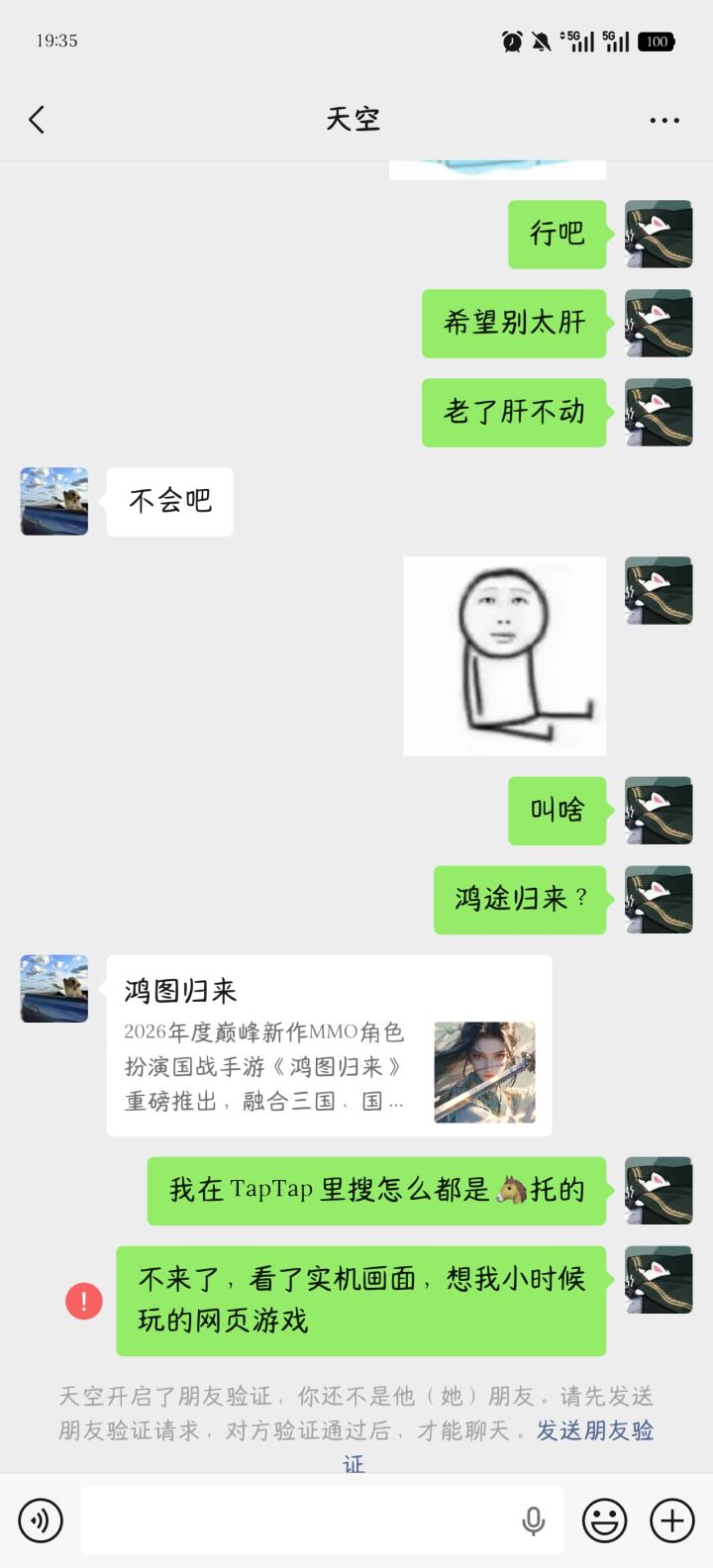 从广告进去玩了个微信小游戏,结果游戏里的盟主拉群后一堆人就开始说小游戏没意思,开始踩腾讯,后面这个游戏就突然冒出来了,来tap一搜,发现还有和我差不多情况的