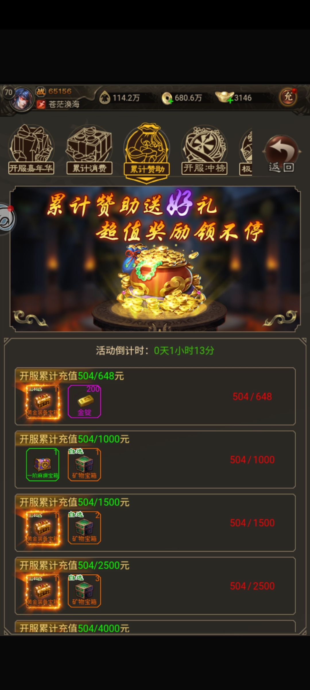 年少的青春,未完的旅程,是你带着我勇敢地看人生;无悔的关怀,无怨的真爱,而我又能还给你几分! 丨活动时间: 即日起至6月19日(6月19日是父亲节哦) 丨活动内容: 在本帖子下方评论,我们将在其中抽取前3条热门回复发放奖励 丨活动奖励: -矿物宝箱*1 -紫水晶矿*1 -时之宝钻*4 -金币*188888 鼓励礼包:fuqin88 内容: -太阳水*100 -洗练石*20 -金币*188888 丨