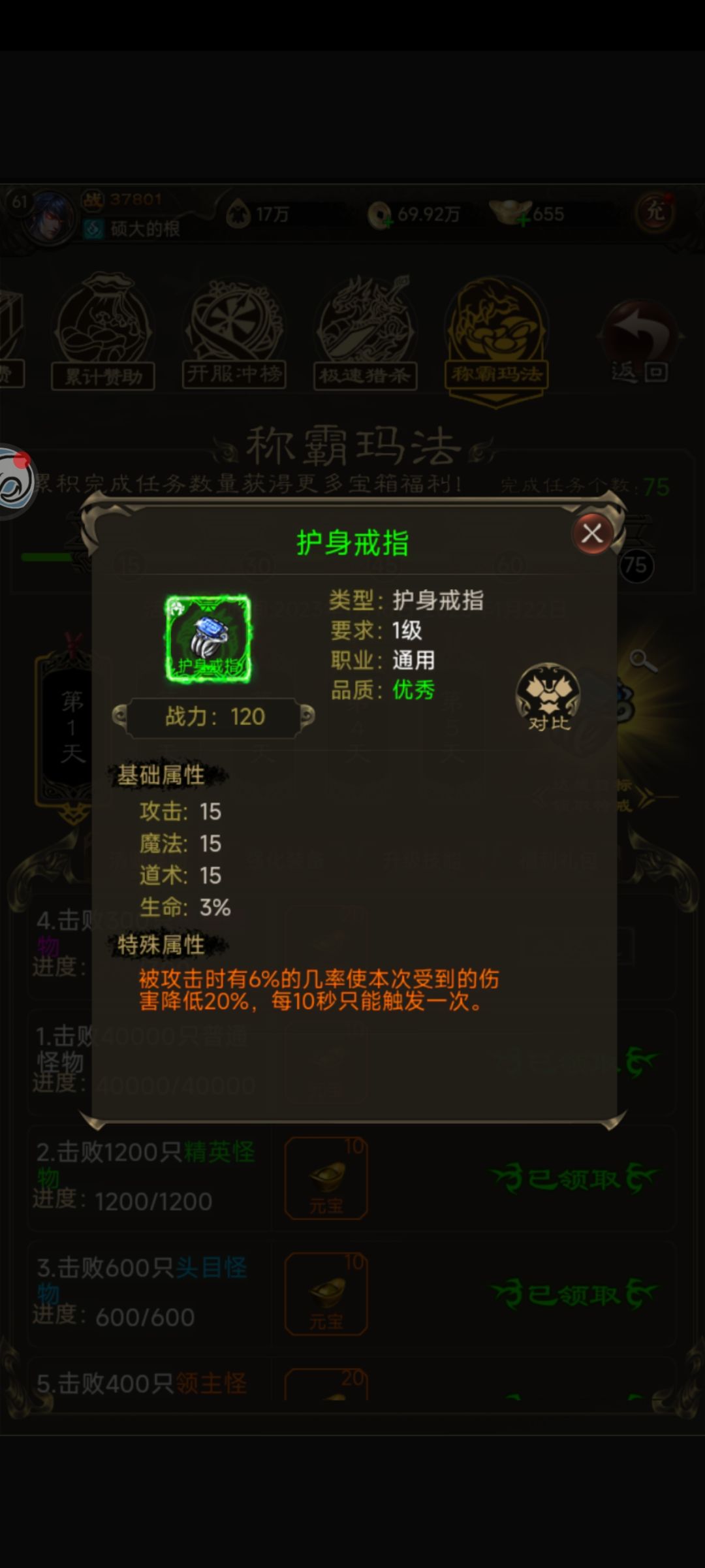 讲讲如何氪较少的金,平稳度过开服前五天的《称霸玛法》,获得绿色特戒-护身戒指
