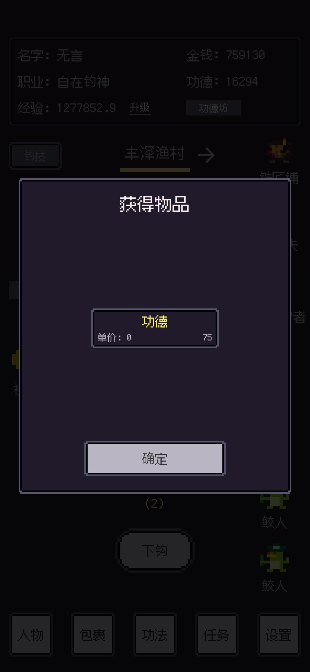 龙珠许愿可以得到的物品,世俗物品是75功德或者2000金币或者一海螺,强生体魄是5攻击和4防御,功法和钓竿是第三选项,一次性道具
