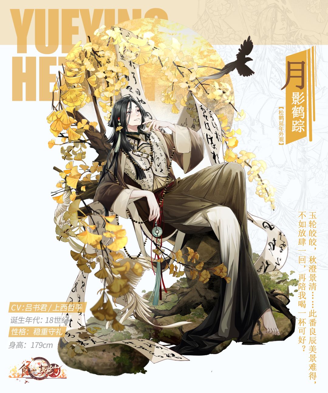 “玉轮皎皎,秋澄景清……此番良辰美景难得,不如放肆一回,再陪我喝一杯可好?” 一、配音 中文:吕书君 日文:上西哲平 二、技能动作展示一览 —————————————— ☆感谢大家对《食之契约》的支持与陪伴,想了解更多资讯可前往官网( )查看! 【食之契约】官方资讯平台: ①官方微博: ②官方微信公众号:搜索“食之契约” ③官方B站: