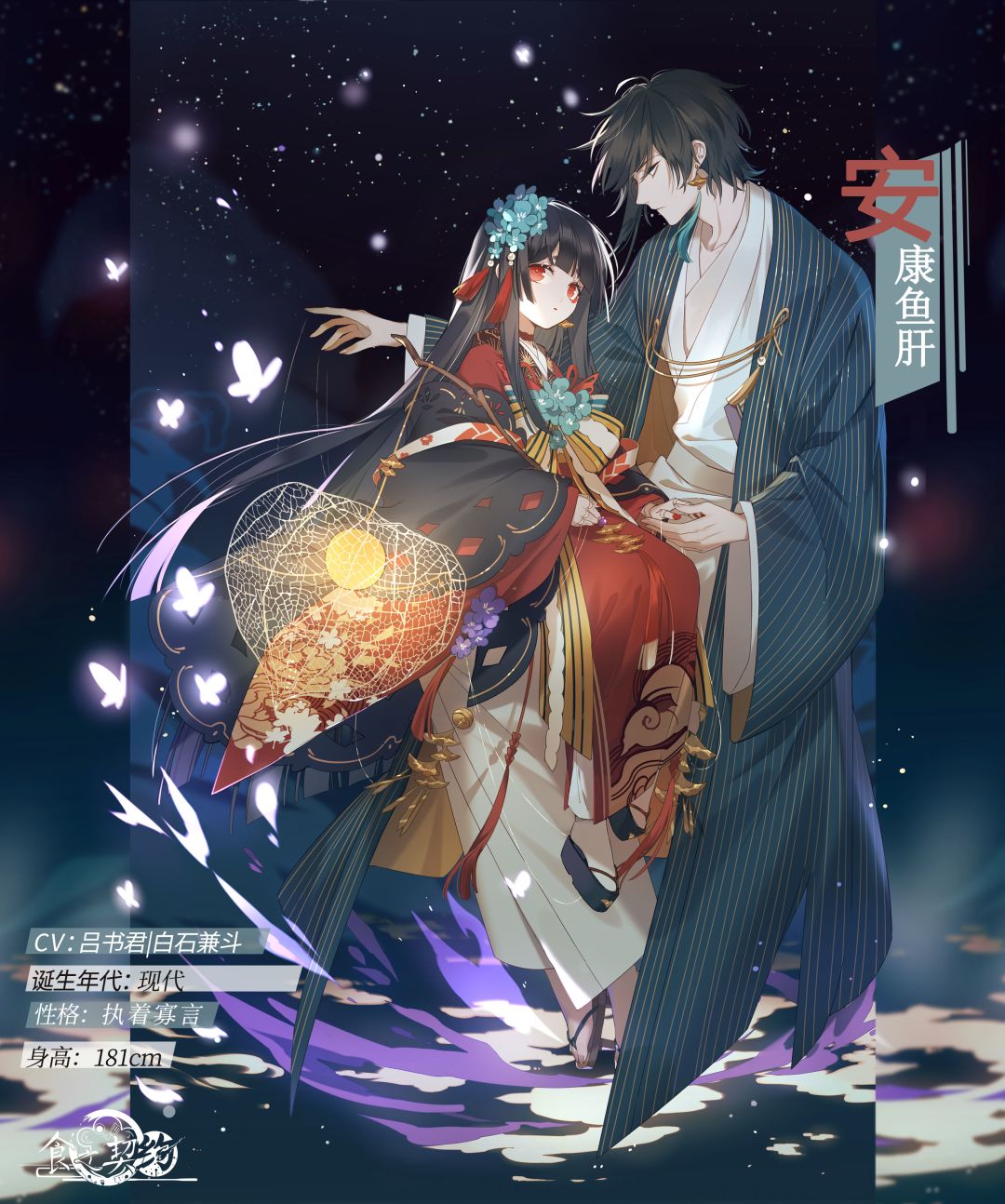 UR飨灵【安康鱼肝】:“其他人,与我何干。” 一、简介 安康鱼肝是位UR飨灵,外表是位操纵人偶的瘦弱阴郁弱视青年。 因为常年生活于海底所以眼睛看不太清楚,可以通过嗅觉辨别堕神和飨灵人类。 他操纵着一个12岁左右的艳丽少女人偶,人偶手中提着一盏灯笼,灯笼里散发着灵力可以吸引堕神。他通过少女引诱堕神过来然后用残忍的方法杀死堕神。 二、配音 【中文】吕书君@音熊-阿君 【日文】白石兼斗 三、设计|灵感 安