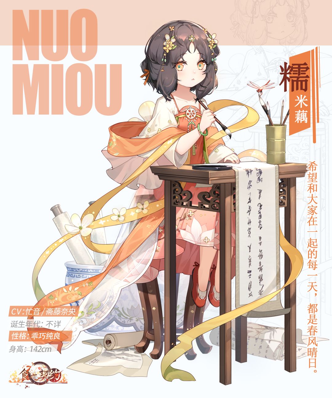 “希望和大家在一起的每一天,都是春风晴日。” 一、简介 糯米藕一般指蜜汁糯米藕或桂花糯米藕,江南传统菜式,是一道独具特色的中式甜品。取新鲜莲藕,藕孔灌入生糯米,文火慢煮,出锅后切片,浇上桂花蜜汁。成品色泽红润,桂香浓郁,入口软绵甜香,是一道极具风味的特色美食。 二、配音 中文:忙音 日文:斋藤奈央 三、技能动作展示一览 —————————————— ☆感谢大家对《食之契约》的支持与陪伴,想了解更多
