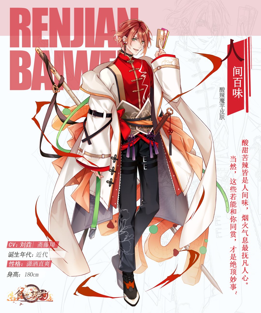 “酸甜苦辣皆是人间味,烟火气息最抚凡人心。当然,这些若能和你同赏,才是绝顶妙事~” 一、配音 中文:刘垚 日文:斋藤翔 二、技能动作展示一览 —————————————— ☆感谢大家对《食之契约》的支持与陪伴,想了解更多资讯可前往官网( )查看! 【食之契约】官方资讯平台: ①官方微博: ②官方微信公众号:搜索“食之契约” ③官方B站: