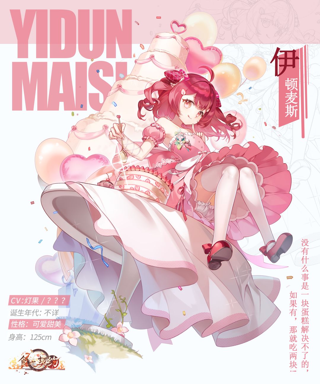 “没有什么事是一块蛋糕解决不了的,如果有,那就吃两块!” 一、简介 伊顿麦斯是一种传统英式甜点,常以蛋白、糖粉、新鲜草莓和奶油为原料,成品红白相配,入口酸甜清爽。伊顿麦斯起源于伊顿公学,相传是某次庆功宴上学生打翻了由蛋白霜和草莓浆果制作的点心,厨师们随机应变,搅上鲜奶油和草莓重新制作,因此而意外备受欢迎,从此流传开来。至今也深受英国人民乃至全世界的喜爱。 二、配音 中文:灯果 日文:敬请期待 三、