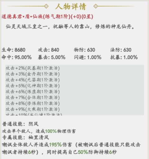 自洪荒时代期,就有无数人、妖、仙、魔投身于修真大道,至今都能留下名号的无一不是有着通天修为和手段。各位仙友应该如何选择合适的英雄一起闯荡三界呢?本位为诸位分析分析游戏中的英雄阵容!首先我们来看看英雄的分类:盾(拥有极高的生命力以及防御力),代表英雄有道德真君、杨森、火寒冰母等医(拥有生命恢复能力,群体治疗),代表英雄有妲己、赵公明等辅(拥有提高队友战斗效果的能力),代表英雄有姬发、殷十娘、如