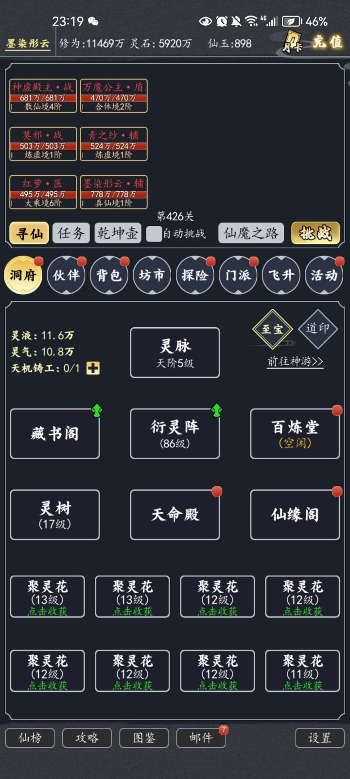 一天六元首冲 215关1.选攻主,开局气运可以反复刷,推荐+2%闪避,+2%伤害加深,+2%暴击,+12属性,+5%基础攻击这几个。属性20点全点神识2.领兑换码3.开局买一个修为礼包伙伴凑齐南宫婉,洛璃(650兑换,不要买礼包),瑶姬,柯渐离(首冲),狂升主角,其他全部不管4.完成新手任务5.买法宝礼包,功法礼包,主角升橙6.主角先一号位,加6后改五号位7.竞技场登顶拿仙玉买仙
