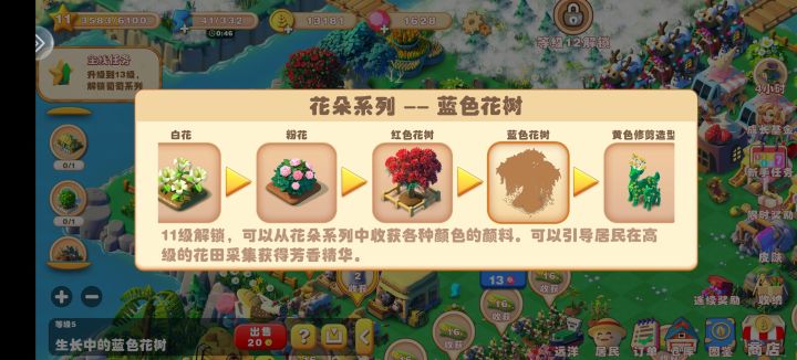 机制带分支的采集类物品使用的是随机的方式获取,稀有掉落概率都是百分之二采集拥有分支的物品有,苹果树(稀有红宝石苹果),矿井(星星碎片),竹林(熊猫宝宝)。带分支的合成物品使用序列方式循环获取合成带序列的物品有 小麦(小麦磨坊和小鸡孵蛋场循环出),玉米(玉米农场和圆圆玉米田循环出),花(一以此按照红-蓝-黄-橙-粉-白-小推车循环出),木材(每85个木材合成出一个树苗,其他为木板)小人升级