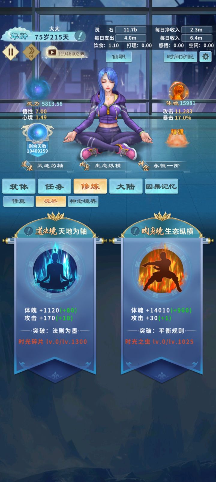 1、天魔什么时候来 40岁2、怎么增加修炼速度:看广告加速3、龙渊之道:因果循环15次4、怎么解锁丹器天资:服用500次丹药5、赤霄之道解锁:因果循环30次6、收益之神解锁:投资宗门达到1200级7、怎么解锁因果:撕裂三次之后才会解锁因果循环8、为什么会突然死亡:解锁了神识探查,开启了大陆(被天魔打死)9、打坐有什么用:提高灵力,精力相当于倍率,升级会变快10、太古炼神怎么解锁: