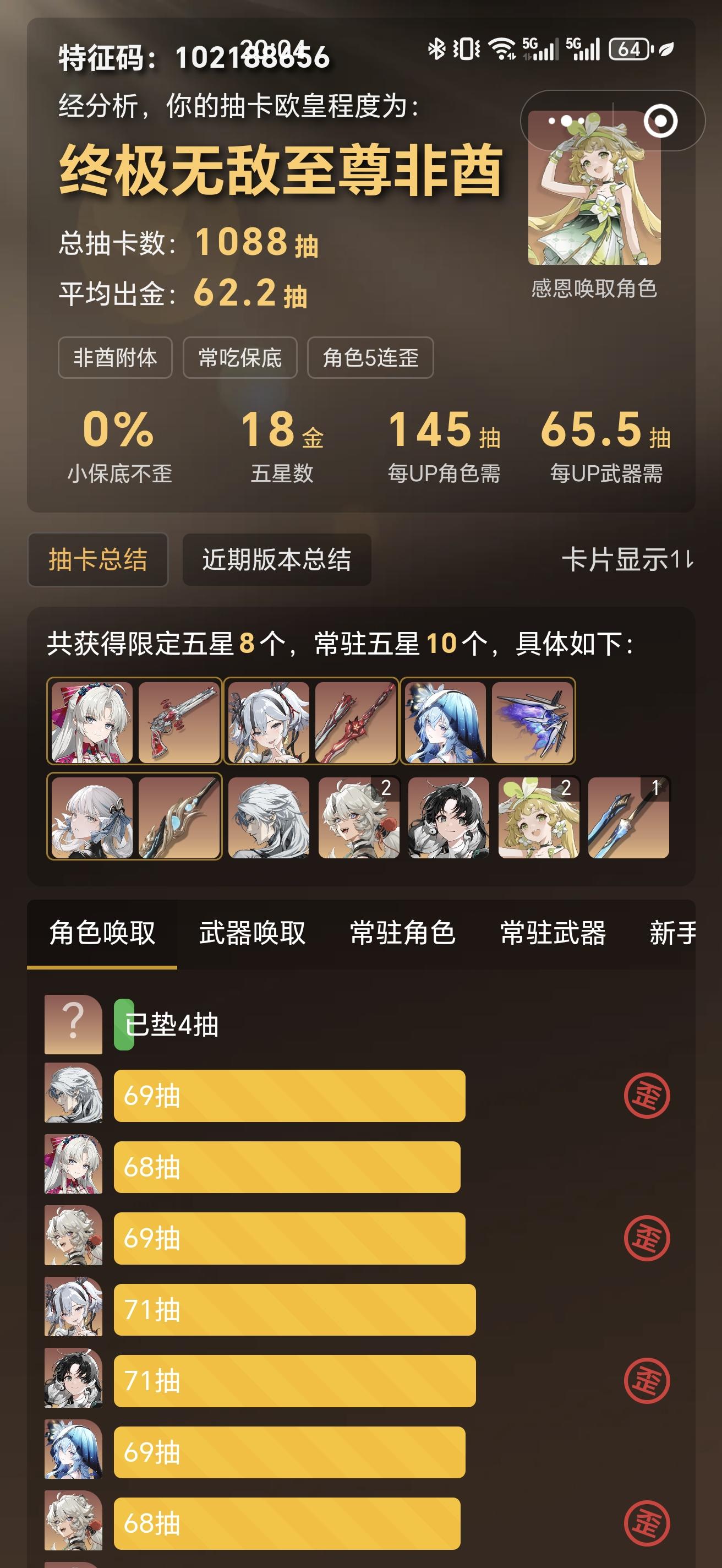 说一下抽卡的问题,其实对我个人而言,歪卡池并没什么大不了的,当然肯定运气好点是最好的,但运气始终是运气这个没法说,有好有坏没办法的事,我之所以实说是唯一一款二游那确实是游戏整体的质量很合我胃口,无论是立绘建模,剧情,特效,操作,还有大世界的探索舒适度都没有什么瑕疵,完美不能说但肯定是高分了,抽卡7次了歪了6次,专武也不是提前出,已经是非常非的了,但还是那句话,游戏质量大于抽卡落差,可能你把这种情况放隔壁我可能就破防了,因为游戏质量加抽卡的双重打击着实扛不住