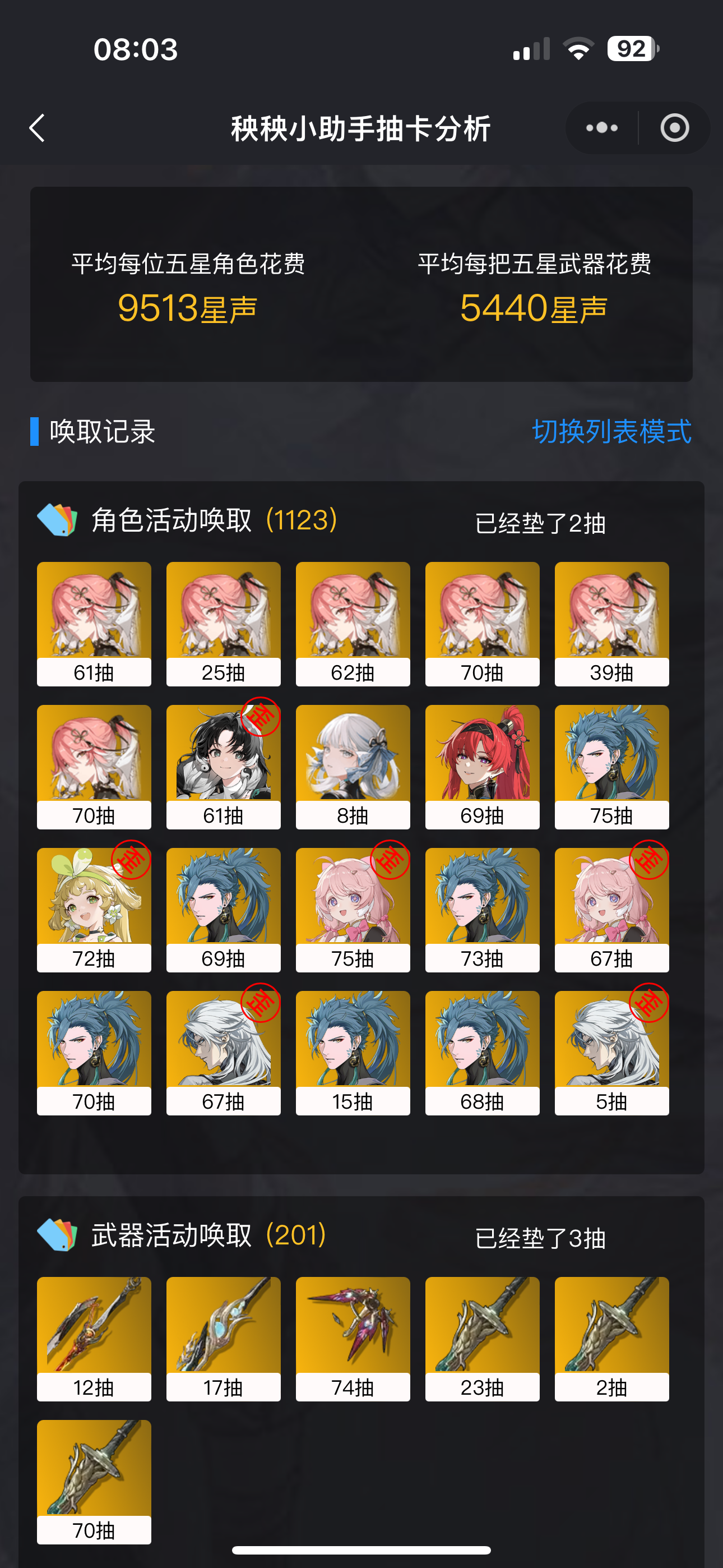 V2.0 「致缄默以欢歌」星声统计