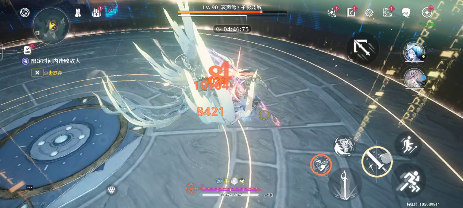 队伍顺序的话,其实都可以,我把守岸人放在了第二位,主要是为了方便后续操作而已,Boss我选用了相对比较难打一点儿的古龙,靠近时记得左手摁着方向键,然后共鸣技能接普攻,如果你们是0链,这里一定不要接声骸,接着我们切到守岸人出来平A打一套,再切回到弗洛洛,此时弗洛洛连续普攻,把音符攒到4个,这里一定要记得,左手一直摁着方向键,你弗洛洛第二段打出去的,就是位移技能,这样就避免了原地站桩挨揍,这时候释放声
