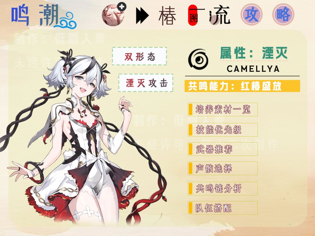 hi!大家好。 我是阿离! 大家期盼已久的椿终于来了。 给大家整理好了椿的养成攻略。 从角色养成,培养材料获取,声骸推荐,技能加点,武器装备,搭配阵容,共鸣链推荐等,全方位为大家讲解现版本椿的养成。 #鸣潮 #鸣潮创作激励 #鸣潮攻略 #鸣潮椿