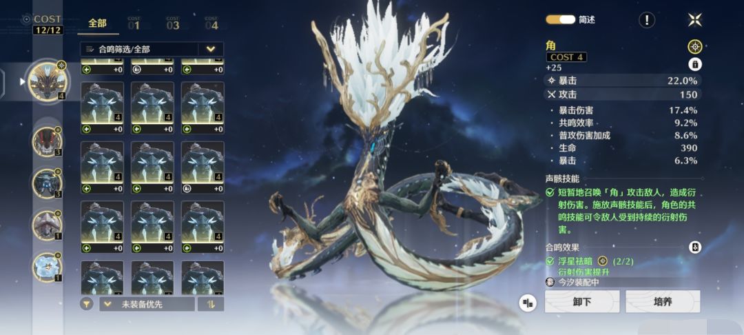🔸椿:推荐主要声骸无妄者cost4、暗套(沉日劫明)。毕业43311or44111 主词条cost4选择双爆、cost3选择暗伤加成、cost1选择百分比攻击 副词条优先选择双爆>百分比攻击>普攻加成>其他(充能堆115%,不然卡手) 🔸【忌炎】:前期推荐主声骸荐推带绿鸟cost3、凑个风套(啸谷长风)过渡、等到12cost时可换飞廉之猩cost4 主词条cost4选择双爆、cost3选择风伤加成