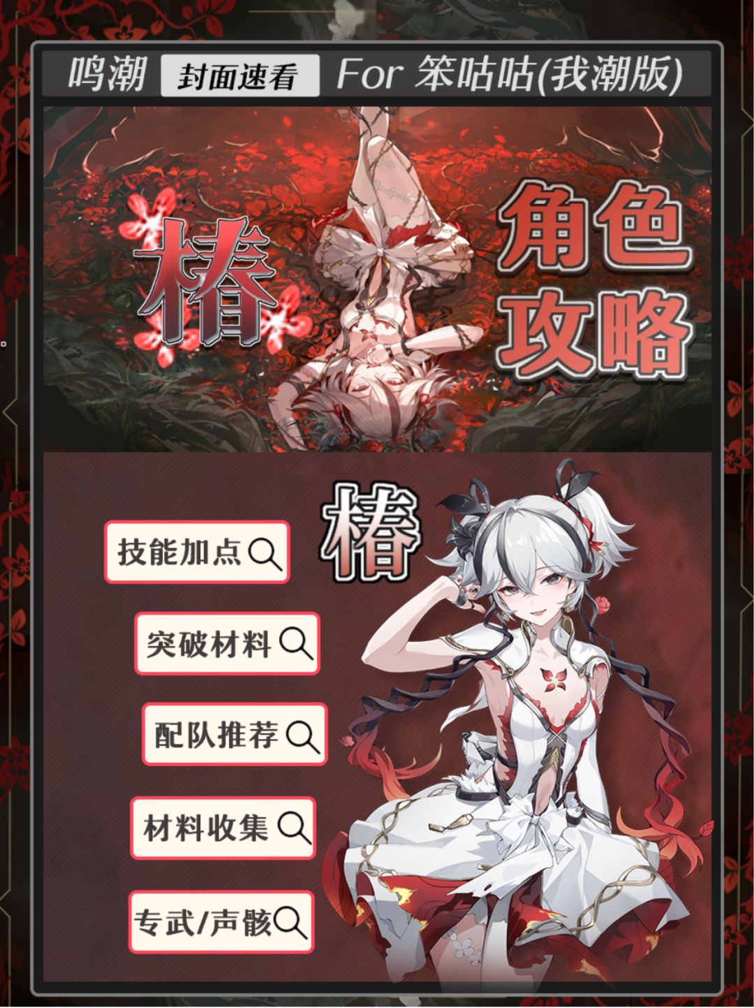 #鸣潮 #鸣潮创作激励 #鸣潮攻略 #鸣潮椿 #鸣潮暗夜叩响白昼之门 登登登!笨咕咕闪亮登场[表情_酷] 本期内容是新鲜出炉的新角色“椿”的培养攻略~ 内含专武/声骸/配队等内容~ 观看的小伙伴觉得不错的话一点要给个大大的赞噢!(内容制作数据相关参考鸣潮wiki,有错误引导,欢迎大家指教批评,笨某一定虚心接受!!) ------グッ!(๑•̀ㅂ•́)و✧------- 觉得有用的话一定要关关笨