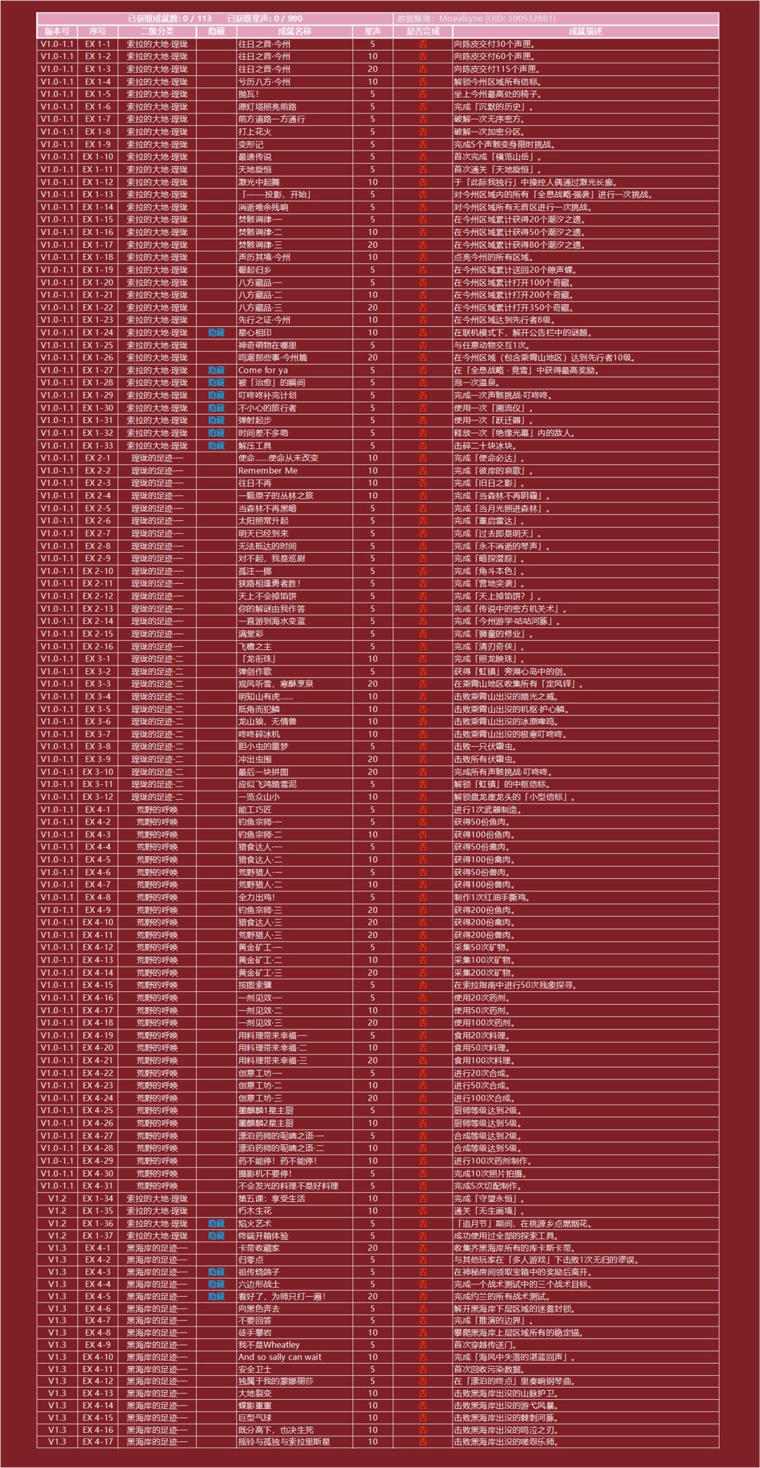 大家好呀,这里是moealkyne,本次给大家带来的是全成就便携查找数据表~ 您可以通过下方链接下载在线文档。 通过此数据表,可以更快的查询自己未完成的成就,并及时记录!可以多多使用哦~ 注意 1、相关复杂的操作流程已经在首图中展示出来,若您仍然无法理解,这里建议您重新学习一下Excel操作,评论区不受理技术层面问题。 2、本链接会随版本更新,为防止您的记录丢失,请及时保存副本。 3、如有成就层面