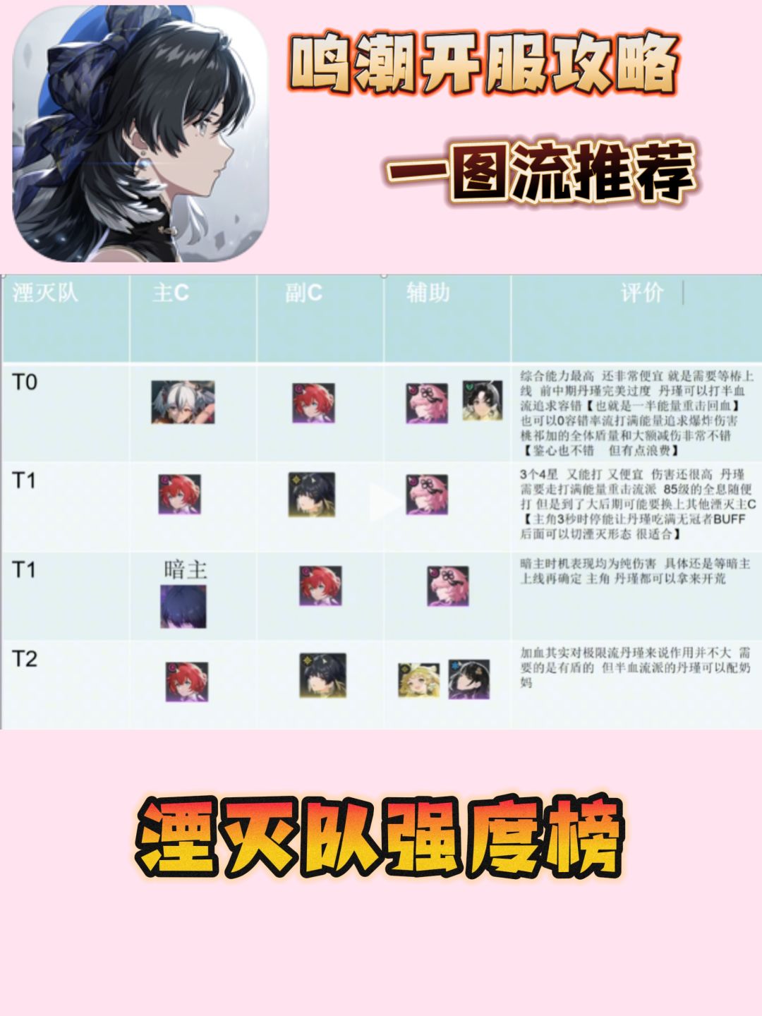 开服攻略丨湮灭队强度榜(一图流)