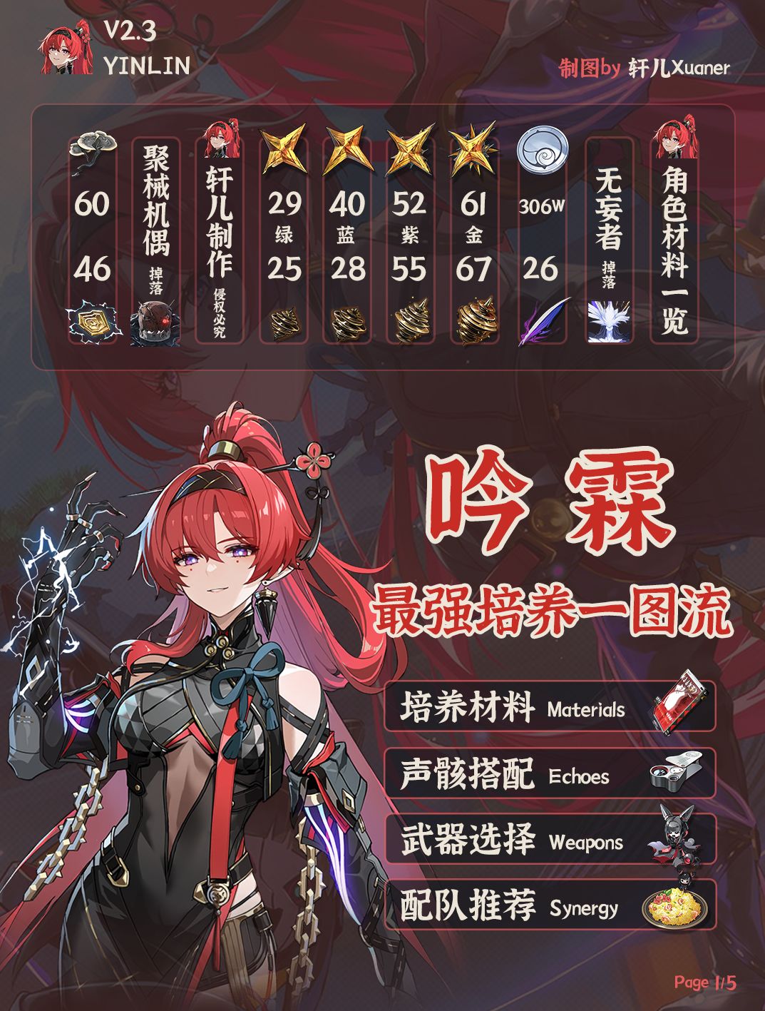 鸣潮角色 | V2.3吟霖培养攻略一图流
