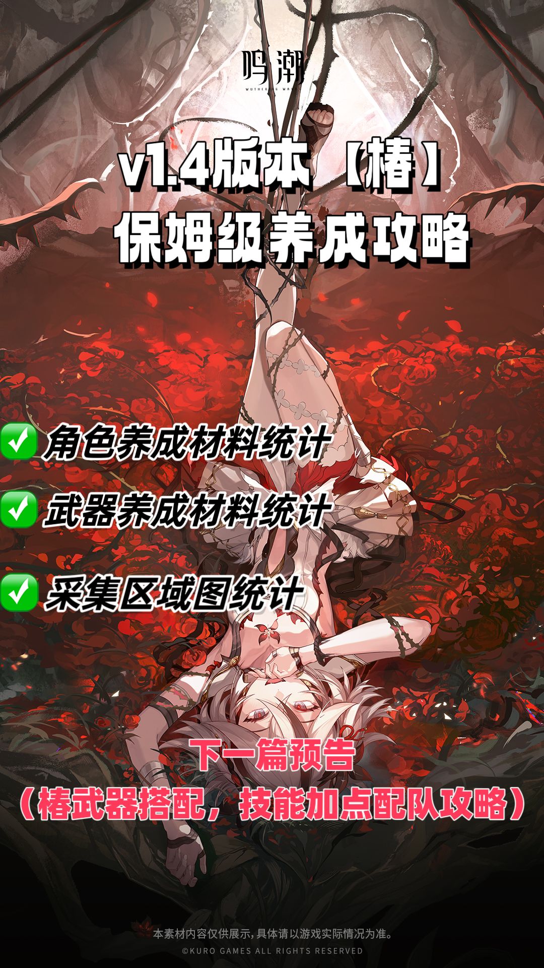 省流观看:1-90级角色养成看p2 1-90级武器养成看,P3 采集区域物品看,P4 ✅️突破素材与天赋素材 🕹椿的突破素材:包括贝币、呓语声核(低频、中频、高频、全频)以及幽囚拓扑和暂星。 🕹天赋素材:包括贝币、呓语声核系列、金属液滴系列和无妄之羽(无妄者掉落)。 🕹要等椿今天上线后进行强度和搭配,测试出来后发角色技能加点,武器推荐,配队推荐。以实战为主!!!今晚更新。 #鸣潮 #鸣潮攻略 #鸣