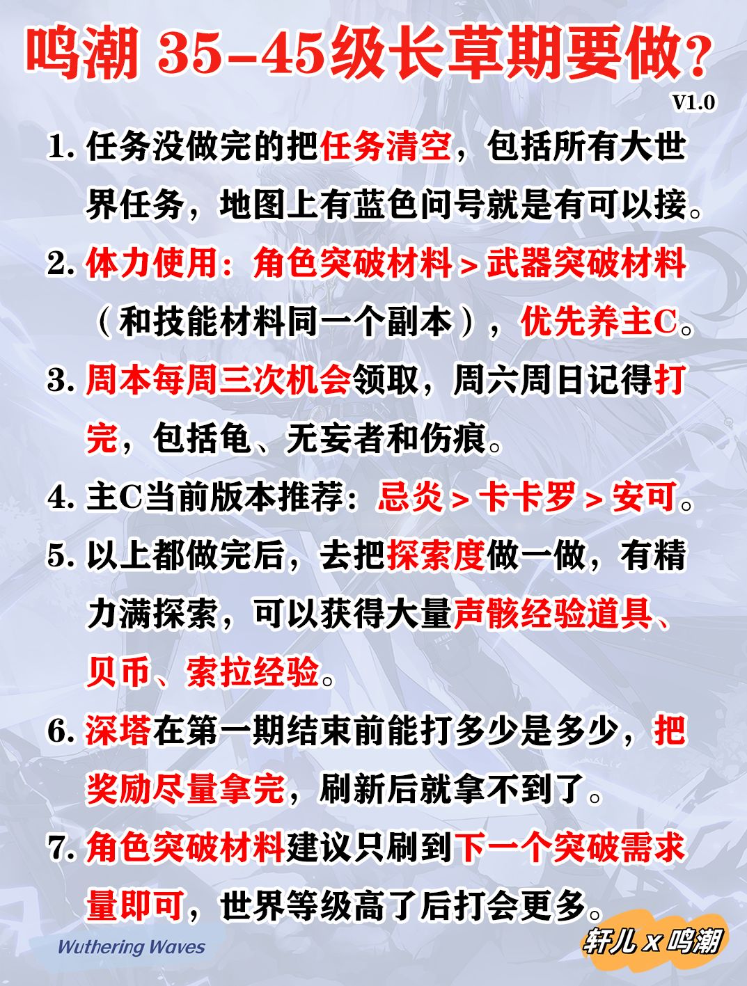 鸣潮35级之后,40级左右不知道干什么,以下14点必看,帮助大家避坑,快速提升练度 | 体力分配 | 声骸刷取 | 突破材料 | 升级 | 探索度#鸣潮 #鸣潮攻略